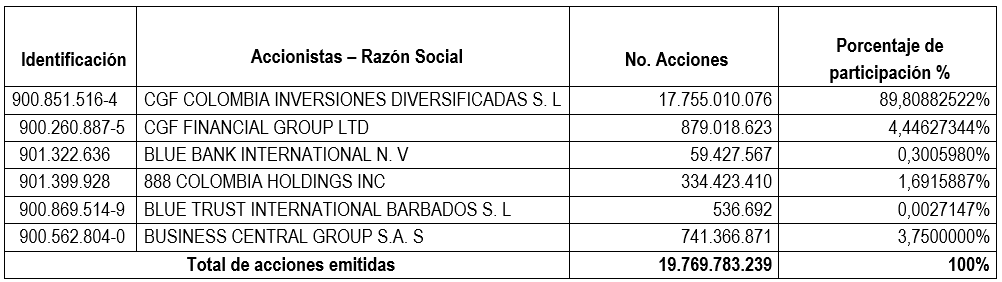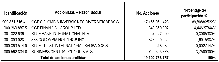 Composición Accionaria Actual de Coltefinanciera